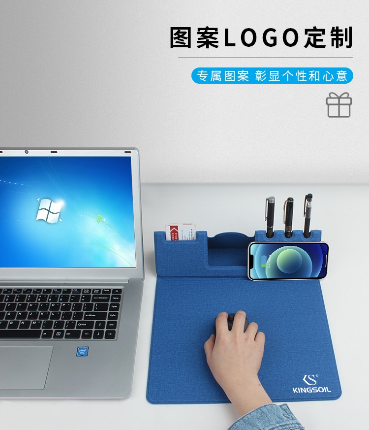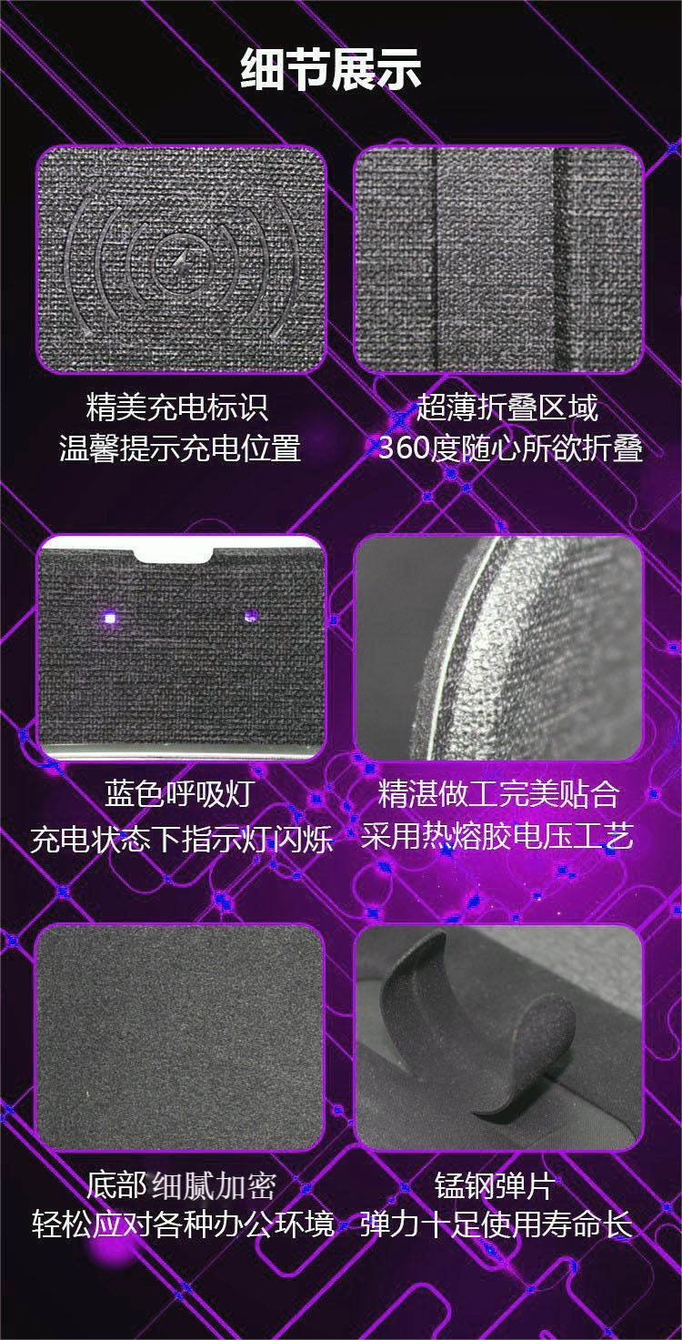 折疊支架款無線充電鼠標墊可定制 布紋超薄無線充鼠標墊可印LOGO