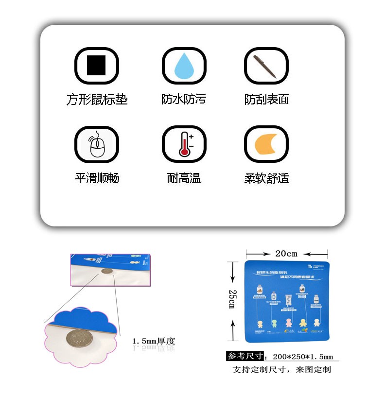 單面皮革鼠標墊、防水耐臟、防滑穩固、廣告商業宣傳,支持尺寸定制,來圖定制