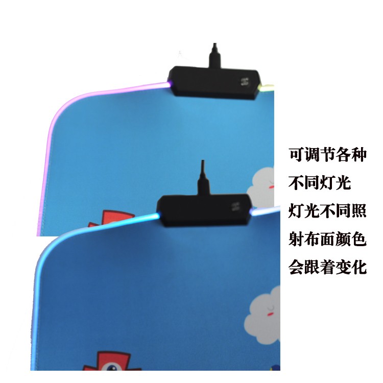 鼠標(biāo)墊的四周便亮起RGB七彩燈光,顏值瞬間拉滿。通過(guò)頂部的燈效切換按鍵,還能調(diào)節(jié)多種燈效,既有固定的,也有動(dòng)態(tài)的,除了七彩燈效,也能設(shè)置自己喜歡的單色。