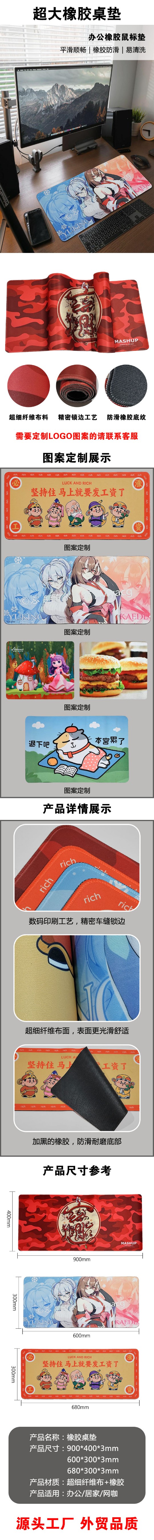 定制橡膠超細纖維布鼠標墊廣告電競游戲墊辦公寫字桌墊杯墊地墊來圖定制